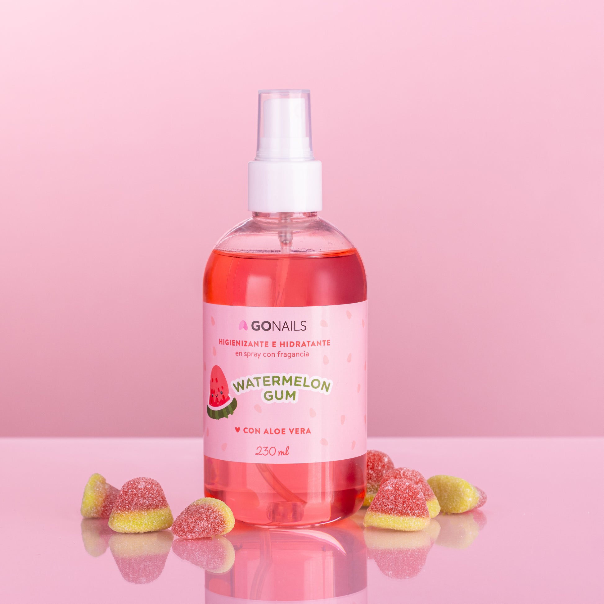 Higienizante e Hidratante en spray con un agradable aroma a watermelon gum y alcohol al 70%, te permitirá desinfectar manos y pies de una forma eficaz y con un toque a dulce realmente maravilloso!